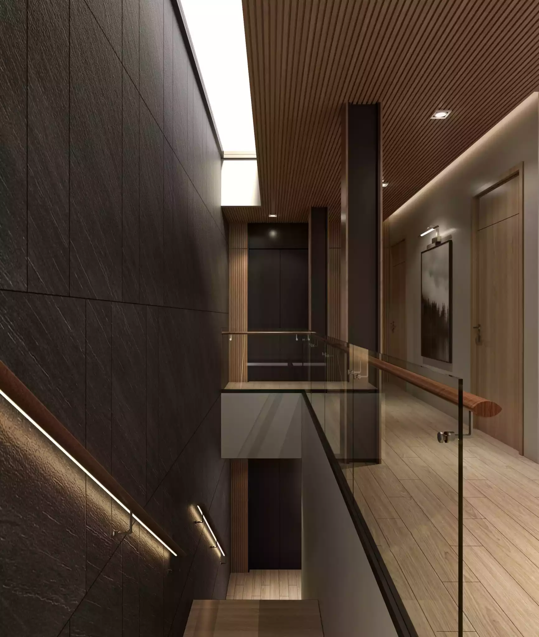 The Scholar – a meticulously crafted three-story single-family home designed in a Modern Luxury style – embraces the Natural Intervention Concept. This innovative design not only offers breathtaking views that connect seamlessly with the surrounding nature but also perfectly integrates the natural world into the living space. Paired with the Identity Living Concept, it caters to the diverse needs and preferences of multi-generational families living together. The exterior features exquisite wooden paneling, reminiscent of a well-organized library, symbolizing the visionary leadership of its residents.